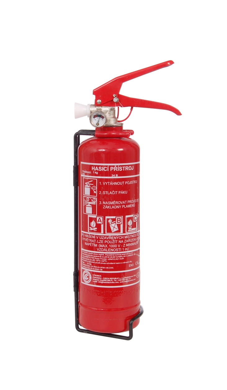 Součástí balení je také držák hasicího přístroje. Hasicí přístroj dodáváme včetně plomby, kontrolního štítku a dokladu o kontrole.