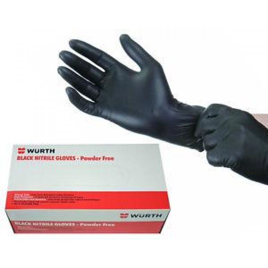 Rukavice gumové WURTH, 100ks, delší, 0899470372, NITRIL, jednorázové, velikost XL, černé, pryžové