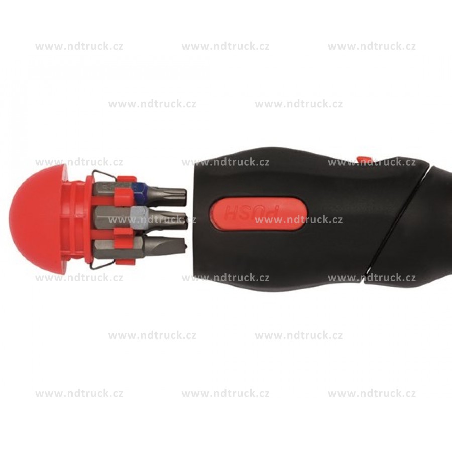 - Po jednom bitu od velikostí PH 1; PH 2; TX 10; TX 20; šestihran 4 mm; šestihran 5 mm; plochý 0,8 x 5,5 mm