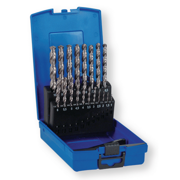 19 spirálových vrtáků DIN 338 SP Ø 1,0-10 mm odstupňovaných po 0,5 mm