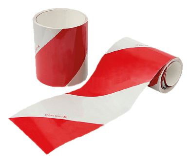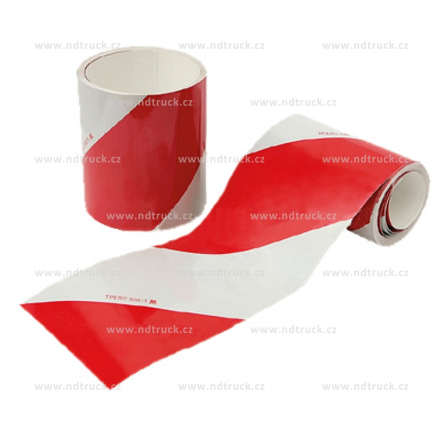 Páska reflexní šrafovaná š.141 mm, PRAVÁ, metráž, samolepka bíločervená