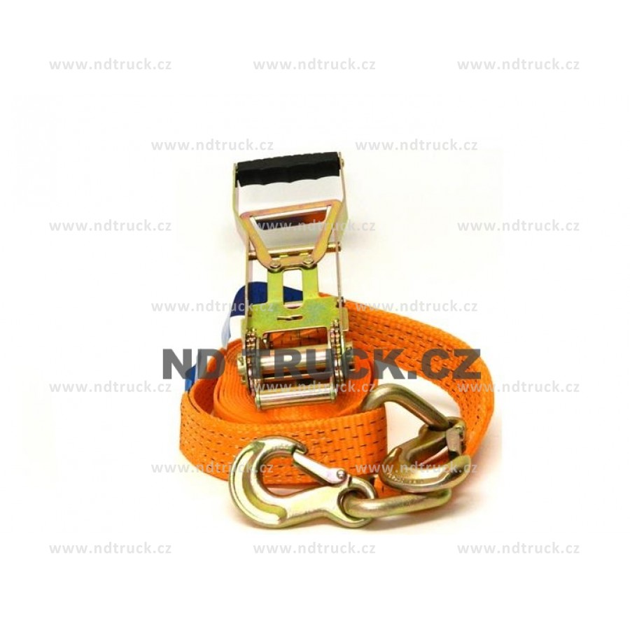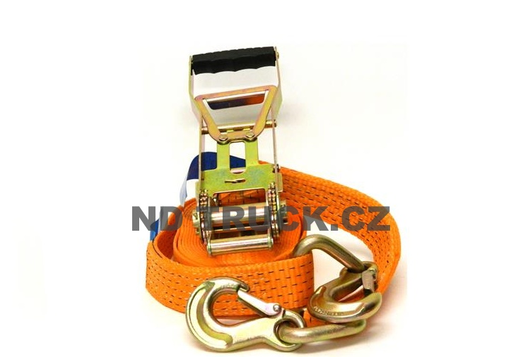 Pás upínací 5t,10m s krátkou ráčnou, s karabinami, háky, popruh