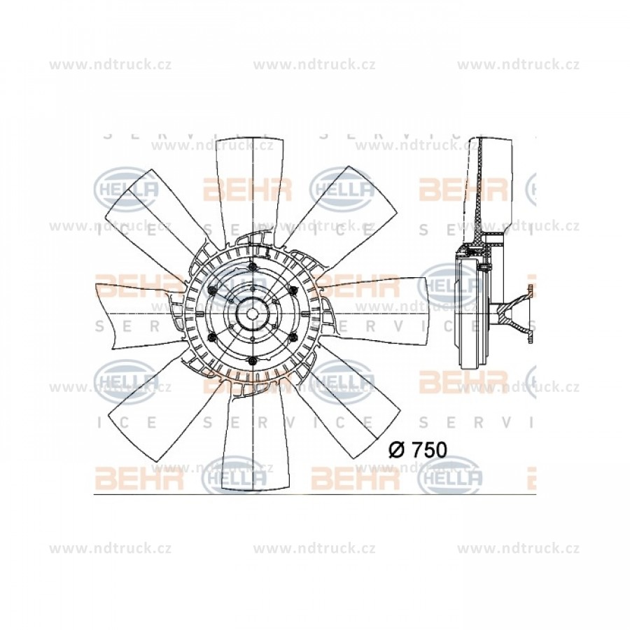 Počet listů vrtule ventilátoru: 8 průměr [mm]: 750 verze: produced by BEHR verze pro těžký výkon