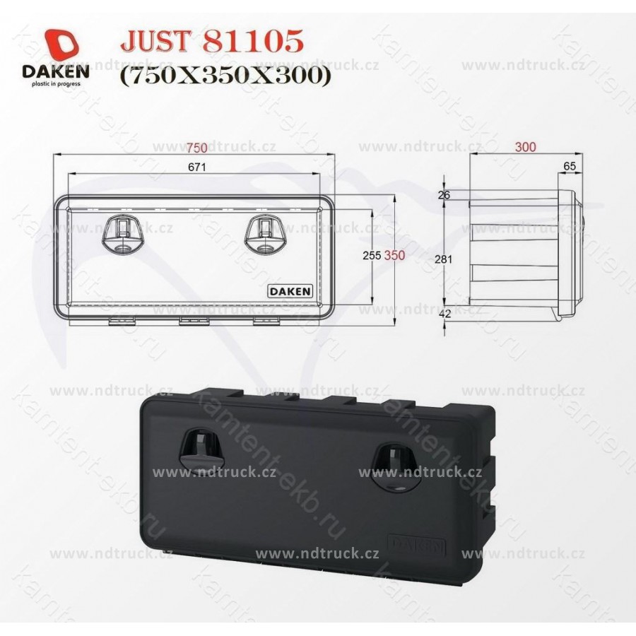 Série boxů JUST je efektivním řešením pro současné požadavky na vybavení užitkových vozidel a přívěsů. Výborná kvalita materiálů, důraz na každý detail a moderní design dělají z boxů JUST základní příslušenství každého přívěsu. Díky přepracované struktuře těsnění jsou boxy prachu i vodě vzdorné. Materiál vyráběný ze surovin bez přídavku recyklátů zajišťuje vysokou odolnost boxu proti UV záření, olejům, palivům, vysokým i nízkým teplotám a zároveň je nehořlavý.