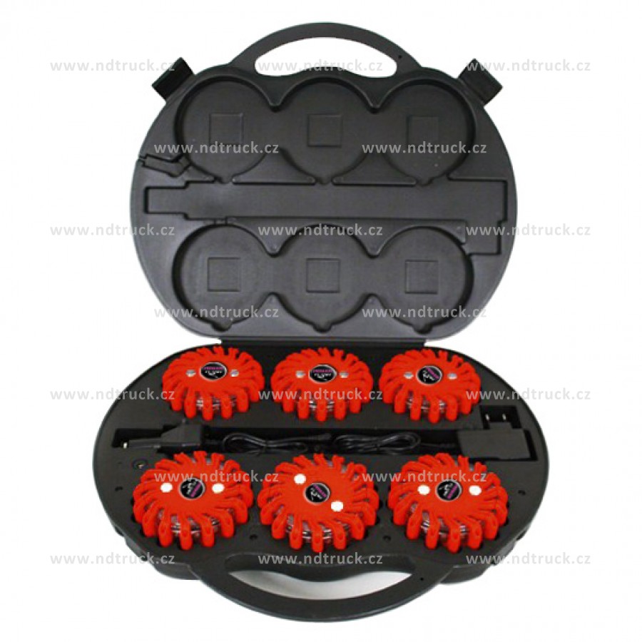 Set 6 ti LED výstražných světel s magnetem vodotěsném nárazuvzdorném obalu, s aku baterií, oranžové barvy uložené v kompaktním kufříku