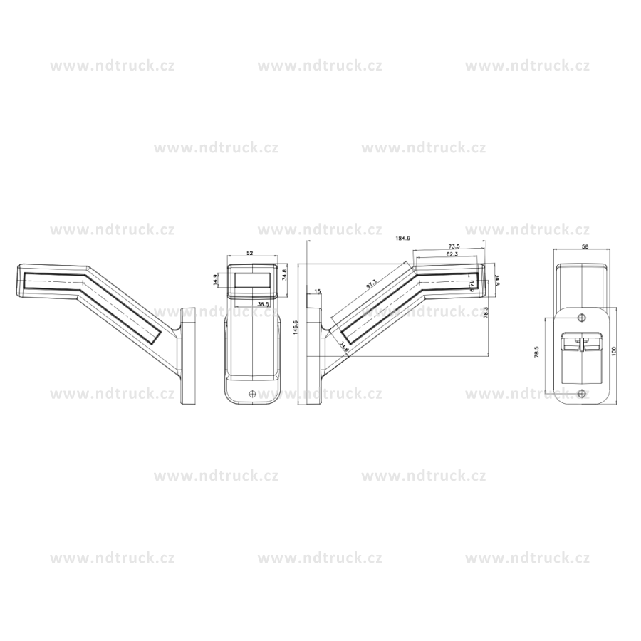 Svítilna obrysová LED, tykadlo, 165L, LED pásek, levé, WAS